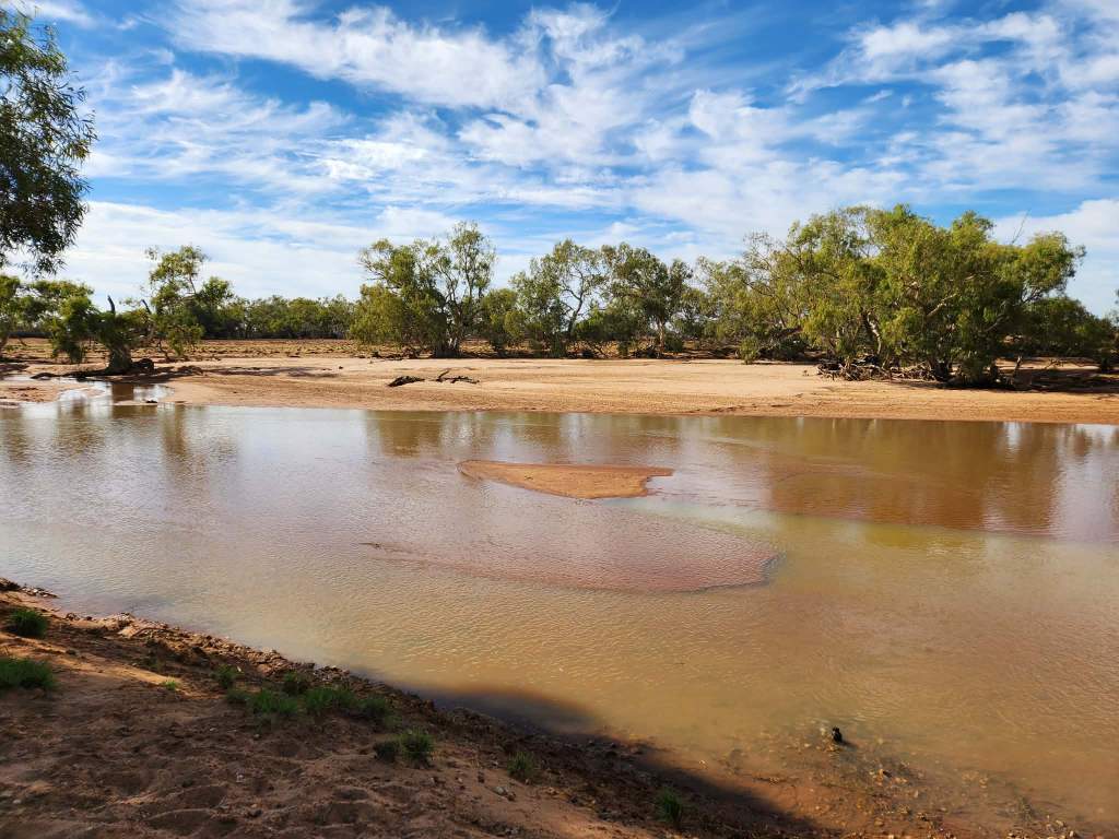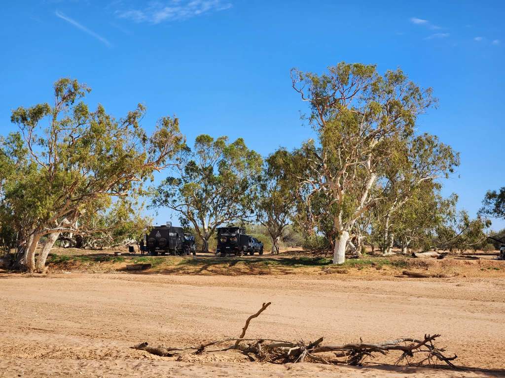 Although there were already quite a few caravans set up, we had a good choice of camping areas to choose from. We chose a nice long one where we did not have to unhitch, since there was nowhere to go. We camped right on the Wooramel River β which was almost completely dry. It was hard to imagine that it was full to overflowing just two weeks ago after Cyclone Narelle!